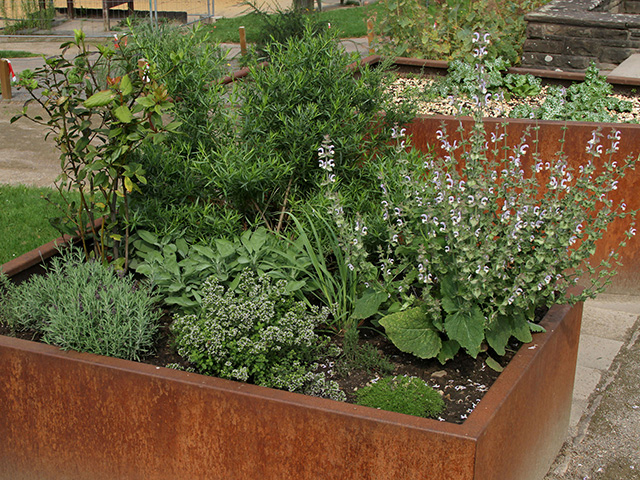 Die wichtigsten Pflanzen des 7. Hochbeetes liefern den Grundstoff für das Salböl, das aus der Bibel bekannt ist. Dazu gehören Salbei, Muskatellersalbei, Thymian und Lavendel. In diese Pflanzengemeinschaft gesellen sich noch Lorbeer, Oregano und Zitronengras.