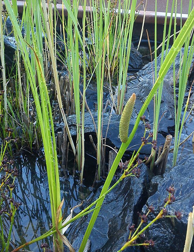 Die Teichbinse ist hier beheimatet. Aus dieser Pflanze flocht Moses Mutter das Binsenkörbchen, in dem er von der Tochter des Pharaos gefunden wurde. Dazu gesellen sich Rohrkolben, Kalmus und Schilf.