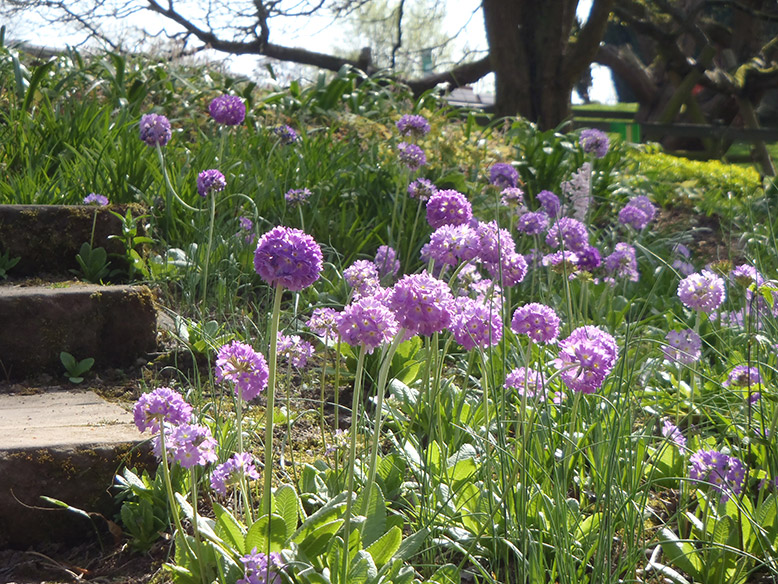 Durch den 2.010 qm großen Primelgarten schlängelt sich der Bachlauf des Botanischen Gartens. Von den 450 Primelsorten sind bei hier vor allem beheimatet die: